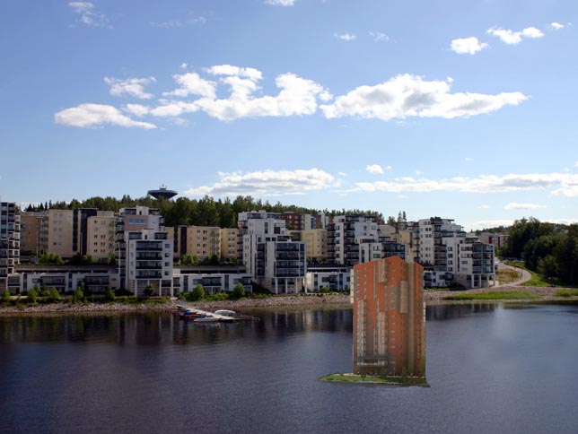 Eli tämä upea asuintalo sijoitetaan keskelle Jyväsjärveä! Aiemmat näköala-asunnot ovat antaneet näköalan Jyväsjärveen 1-2 sivulta, mutta näistä asunnoista Jyväsjärvi näkyy kaikissa suunnissa. Näiden näköala-asuntojen hinta on siis vähintäänkin kahdeksankertainen kaikkiin muihin asuntoihin nähden!