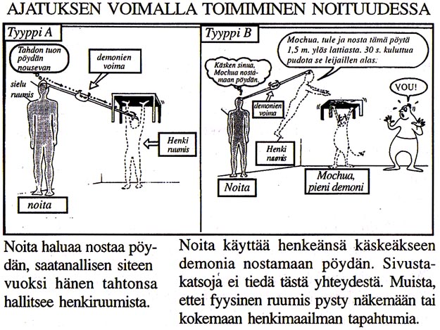Vanhemmat: mikäli lapsenne on suistumassa noituuden pauloihin, ensimmäinen asia, mitä tulee tehdä, on hävittää kaikki rituaalivälineet ja asettaa lapsi kotiarestiin. Jumalan ja Jeesuksen rukoileminen avuksi on myös erittäin tärkeää. Temppelistä voitte myös hakea pyhää vettä, ja pirskottaa rukoillessa lasta sillä. Olen itse nähnyt, kun pahimmissa tapauksissa pyhä vesi ensin suorastaan kiehuu lapsen iholla!