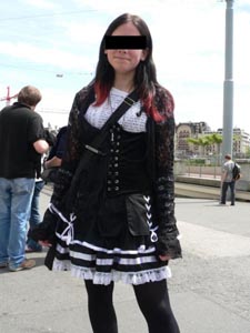 "Siskoni on noita" -TV-sarjaa muuten on esitetty uusintana jatkuvalla syötöllä tänä viiden vuoden aikana, joka on kulunut tämän Oikean Mielipiteen ensimmäisestä ilmestymisestä. Tämä todistaa, että noituudella on lasten ja nuorten keskuudessa edelleen suurta kysyntää. Kävin myös internetin puolella tarkistamassa: google-hakukone löytää wicca-sanan suomenkielisiltä sivuilta peräti 21 800 kertaa! Myöskään täällä Kuokkalassa ei noituus ole valitettavasti ahkerasta toiminnastamme huolimatta vähentynyt. Harva se päivä voi nähdä mustiin pukeutuneita, kalpeita ja mustalla meikillä "somistautuneita" nuoria naisia, joilla on mukanaan okkultistisia symboleja ja ihollaan pakanallisia tatuointeja. (Oikealla kuva tyypillisestä noita-asusta.)